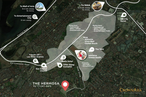 Landmarks: NAIA, SM Sucat, Mella Hotel, Vista Mall Global South, Entertainment City, Villar Sipag Complex, All Home, Global Market, Coffee Project, Santuario de San Ezekiel Moreno, The Tent at Vista Global South