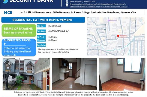 For Sale Foreclosed house in Villa Hermano IV Phase 2, Brgy. Sta Lucia, Quezon City