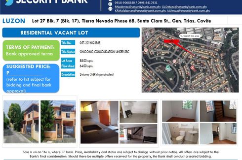 Sale is on an "As is, where is" basis. Price, Availability, and Status are subject to change without prior notice. All offers are subject to the Bank's final consideration. Should there be multiple offers received for the property, the Bank shall conduct a sealed bidding. The particulars, details, and visuals shown herein are intended to give a general idea of the property and as such are not to be relied upon as statements of facts. While such particulars and details are based on present features which have been prepared with utmost care and are given in good faith, buyers are invited to verify their factual correctness and subsequent changes, if any. The contents herein are subject to change without prior notice and do not constitute part of an offer or contract.