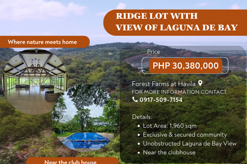Enjoy a peaceful, nature-inspired lifestyle in Forest Farms by Havila, a premium residential community by Filinvest Land. This 1,960 sqm lot is ideal for building a spacious family estate, weekend retreat, or garden sanctuary — surrounded by trees, fresh mountain air, and scenic views.