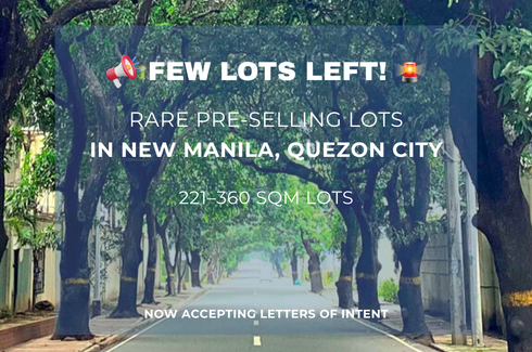 Here's your chance to own a piece of New Manila, one of QC's most sought-after neighborhoods. A new, ultra-exclusive gated community is in its pre-selling stage. You'll buy the lot and have the freedom to build your dream home from scratch.
