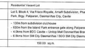 Foreclosed vacant lot for sale in Amalfi at the Island park paliparan Dasma Cavite