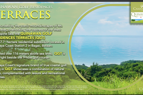 Experience the epitome of mountaintop living at Quinawan Golf Terraces, a prestigious residential enclave perched on the hills of Camaya Coast Station 2. Indulge in breathtaking vistas, world-class amenities, and a tranquil atmosphere, all while being just moments away from the vibrant beach life.