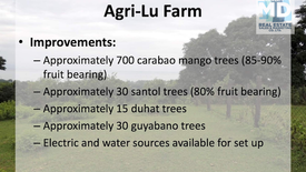 Approximately 700 carabao mango trees (85-90% fruit bearing)