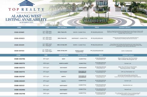 WE HAVE MORE LOTS AND HOUSES FOR SALE IN ALABANG WEST, kindly refer to the photo for the whole resale availability!