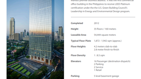33 above-ground floors (plus 5 levels basement); ~160 m tall, with a total gross leasable area of approximately 62,800 – 65,000 sqm.