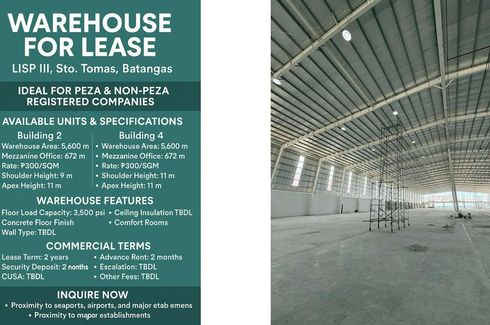 Warehouses for lease in Light Industry & Science Park III (LISP III), Sto. Tomas, Batangas, ideal for both PEZA and non-PEZA registered Companies