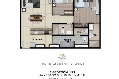 Park Mckinley West 1 bedroom unit Pre selling condo in Mckinley West, Fort Bonifacio1 bedroom features- with balcony- Ceramic tile flooring in living, dining and kitchen area- Excellent Ventilation- semi finished- Facing West, Sunset, and Amenities- 2 Split type aircons- Glass partition, sink and shower included in the bathroom- Two burner cooktop with range hood- built in Modular closets, under counter...
