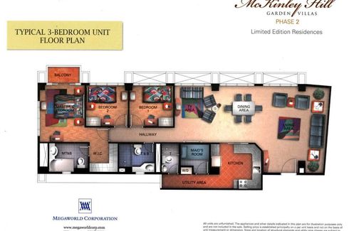 New ‹ › 1/14 3 Bedroom Condo for rent in McKinley Hill, Metro Manila Taguig, Metro Manila ₱ 85,000 / month 3 2 Condo Swimming pool Gym Car park Balcony Electricity Concierge Elevator Water Alarm Fire exits McKinley Garden Villas by Megaworld is located along McKinley Road, McKinley Hill, Taguig City. A high end residential compound safe and secured in a well developed area. A few minutes away to BGC, Makati CBD and C5 Service Road.135.60sqm 3BR Semi-Furnished with 2 T&B at the 5th FloorP85K/mo with 1 Parking, inclusive of assoc dues, exclusive of utility bills2 mos dep + 2 mos Adv and pdcsMin of 1 year... Call