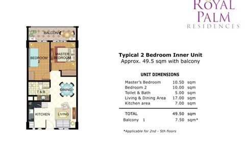 New ‹ › 1/19 2 Bedroom Condo for rent in ₱ 40,000 / month 2 1 Condo Swimming pool Air conditioning Gym Security Car park Balcony 24-hour security Children's area +8 Royal Palm Residences by DMCI Homes, located at Acacia Estates, Taguig City. Very Accessible via C5 to Bonifacio Global City, Mcinley Hill & Makati. Also accessible to Ortigas Center and Eastwood City.New road with direct access to C6 and Bicutan is now available to Acacia Estate residents.Amenities: Swimming Pools, Basketball Court, Playground, Soccer Field. Clubhouse with Gym, Lounge, Function Rooms... Call