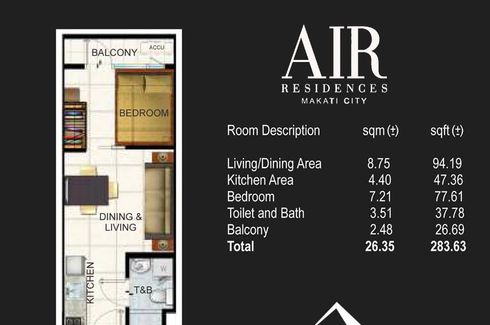 ‹ › 1/6 1 Bedroom Apartment for sale in Air Residences, San Antonio, Metro Manila Makati, Metro Manila ₱ 10,000,000 (₱ 384,615 / m2) 1 1 26 m2 Apartment Swimming pool Air conditioning Gym Security Garden Balcony Electricity Panoramic view +6 Air ResidencesSMDC Premiere brings you within the city’sprimary central business district and inspires aprofessional succcesfull lifestyle with the building’sEuropean fashion-based design. two level amenity deckAnd the two-storey AIR Mall cultivates and continue convinience,providing daily needs and momentary indulgencesReady For Occupancy Property Investment1 Bedroomwith Balcony26.35 sq.mSemi... Call