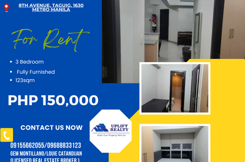 ‹ › 1/12 3 Bedroom Apartment for rent in BGC, Metro Manila Taguig, Metro Manila ₱ 250,000 / month 3 3 307 m2 Apartment Regent Parkway Unit for Rent- 3 Bedroom Condo Apartment- Semi-furnished- 307 sqm., 3303 sqft.- + 2 Parking slots- 250K/monthDirect to OwnerUploaded by: Alyanna DealSeeker PH Verified seller Call