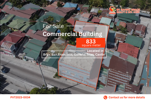 ‹ › 1/1 Shophouse for sale in San Francisco, Cavite General Trias, Cavite ₱ 40,000,000 833 m2 Shophouse Commercial property can be a profitable investment because it grows faster than other types of investments over time! Check this newly added Commercial building for sale along Arnaldo hwy, General Trias, Cavite.Code: PVT2023-0034Type: Commercial BuildingLot Area: 833 sqmProperty details:- 2 Building- School- Church- 6 car carport with open areasNearby Places:- Vista Mall General Trias - 1 min drive... My Saving Grace Realty & Development Corp Verified seller Call