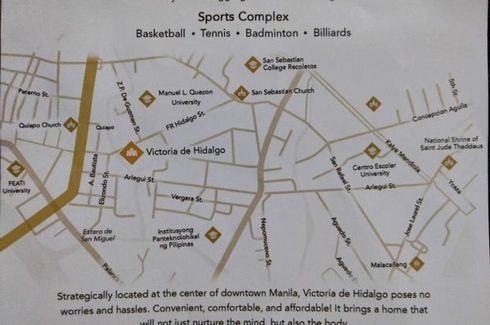 Not your ordinary condo It's more than just a home! Live in your dream home with the active lifestyle you've always wanted. Be in the center of the growing Manila without any hassle. Victoria de Hidalgo is a soon to rise condominium with Sports Complex.