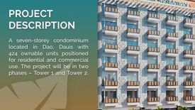 A seven-storey condominium located in Dao,Dauis with 424 ownable units positioned for residential and commercial use. The project will be in two phases-Tower 1 and Tower 2.