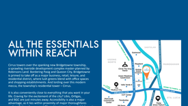 Standing tall at Bridgetowne East in Pasig City, CIRRUS is a riverside development masterfully developed with accessibility as its middle name and sustainability as its game. The place is within a central location where one can stay on the top of their game thanks to the presence of several establishments just within reach. Therefore, vital places like SM Pasig, The Medical City, and even major cities like Ortigas are just minutes away from here. CIRRUS promises a home where everything you need is within one's reach in order for one to rise above the rest and enjoy the pinnacle of success!