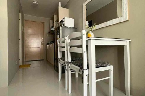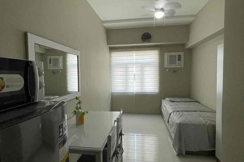 28 square meter fully furnished studio unit complete with 2 single beds with orthopedic mattresses, ref, aircon unit, kitchen countertop stove, study tables, dining table and chairs, big wall mirror, kitchen cabinets, shower water heater, glass shower enclosure and bathroom fixtures.