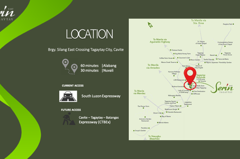 Avida Serin East Tagaytay Condominium Unit For Sale in Tagaytay Silang CaviteProperty Type: CondominiumLocation: Brgy. Silang Crossing East, Tagaytay, CaviteFloor Area: 40Square MetersPrice: PhP 7,265,227.50Floor: 4thPre-selling Downpayment of Php 1,140,000Monthly Payment of 22kBank Guarantee payment on August 2025 Php 5,531,782Building: Tower 3Bedroom: 1Bathroom: 1Balcony: 1Furnished: Semi FurnishedReference:...