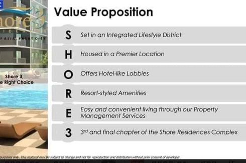 Looking for a 2 bedroom unit in Pasay? Check this BIG 2 BR unit in SHORE 3 Residences, Mall of Asia Complex, Pasay City. PROMO TERM: Step-up payment with 10% discount2 Bedroom End Unit with Balcony77sqmFacing Mall of AsiaPrice Before: P31,645,425Price AFTER: P28,480,883PAYMENT TERM:Reservation Fee - 100,000Month 1 to 12 - 62,868 per monthMonth 13 to 24 - 94,936 per monthMonth 25 to 36 - 118,670 per...