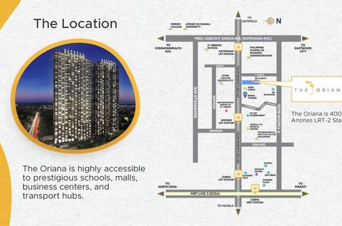 ‹ › 1/15 1 Bedroom Condo for sale in The Oriana, Marilag, Metro Manila near LRT-2 Anonas Quezon City, Metro Manila ₱ 4,853,000 (₱ 167,345 / m2) 1 1 29 m2 Condo Swimming pool Gym Security Car park Tennis court Children's area Elevator 𝟭𝟱% 𝗗𝗣 𝗣𝗥𝗢𝗠𝗢! | 𝗧𝗵𝗲 𝗢𝗿𝗶𝗮𝗻𝗮Condo in Aurora Blvd, Marilag, Quezon CityNear: LRT Anonas Station, Araneta Center, Eastwood, Gateway Mall, World Citi Medical Center𝗕𝗨𝗜𝗟𝗗𝗜𝗡𝗚 𝗖𝗢𝗠𝗣𝗟𝗘𝗧𝗜𝗢𝗡:𝗡𝗼𝗿𝘁𝗵 𝗧𝗼𝘄𝗲𝗿: 𝗔𝗽𝗿𝗶𝗹 𝟮𝟬𝟮𝟲𝗦𝗼𝘂𝘁𝗵 𝗧𝗼𝘄𝗲𝗿:... Sophia Coleen Calimag Call