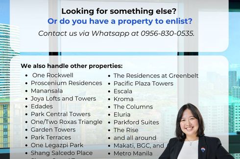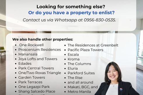 FOR SALE: Edades Suites, Rockwell, Makati 3 Bedroom (Direct Buyers only) - Proscenium Lincoln Tower, Makati City Joya Lofts and Towers, Rizal Tower, Luna Gardens, Hidalgo Place📍 Edades Suites, Rockwell Center, Makati (Direct Buyers only)3 Bedrooms (243 sqm)3 Toilets & Baths Maid’s Room with T&BPowder Room3 Parking Slots (Ground Floor)Selling Price: ₱139,500,000 (Gross, Firm) — ₱574K/sqmCode:...