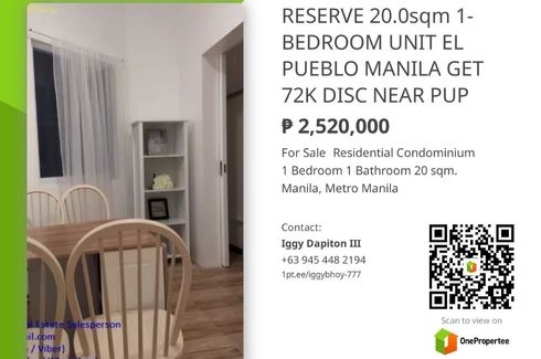 1 Bedroom Condo for sale in Manila, Metro Manila near LRT-1 Bambang