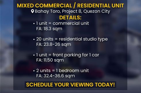Save this search to receive emails when new condos for sale are listed in Bahay Toro. The average listing price in Bahay Toro was ₱ 3,154,839 on 1 Sep 2021 and the average size was 22.6 square meters with 1.0 bedrooms. The average price per square meter for condos in Bahay Toro was ₱ 139,595.