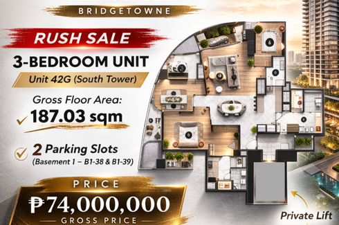 ‹ › 1/1 3 Bedroom Condo for sale in Haraya Residences, Blue Ridge B, Metro Manila Quezon City, Metro Manila ₱ 74,000,000 3 4 Condo Swimming pool Air conditioning Gym Security Car park Garden Balcony 24-hour security Sauna +15 Rush Sale 3BR Unit for Sale – Haraya Residences Bridgetowne | 187 sqm | 2 Parking | Deed of AssignmentProperty Details:Building: Haraya Residences, BridgetowneDeveloper: Shang PropertiesUnit: 42G (South Tower)3 Bedroom UnitGross Floor Area: 187.03 sqmWith 2 Parking Slots (Basement 1 – B1-38 & B1-39)Deed of Assignment SalePrice:₱74,000,000 GrossPayment Terms:Updated Cash Out (as of February 2026):... Juki Lagat Verified seller Call