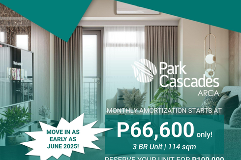 EARLY MOVE-IN PROMO UNTIL JANUARY 31, 2025 ONLY!Move in as early as June 2025*Upon unit readiness, completion of 10% DP + 3 monthly amortizations3 Bedroom Unit (114 sqm)Reservation Fee: P100,00010% Down Payment: P3,095,000Monthly Amortization (10% over 48 months): P66,600Park Cascades at Arca SouthEast Union Drive, Arca South, Western Bicutan, Taguig CityEpitomizing luxury and leisurely living, Alveo...