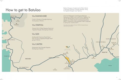 Nestled near the foothills of scenic Mount Batulao is a new residential tourism and leisure development unlike any other. Batulao Artscapes is envisioned as a design-driven community that celebrates art and adventure in an expansive natural landscape.As the world’s first livable art park, Batulao Artscapes features designer homes and world-class vacation amenities. Batulao Artscapes showcases a fine collection of art you can actually live in – limited edition designer homes from some the most notable names in architecture in design around the world. Art cum adventure facilities include a sports park, flavor park, and an art park with four museums designed by Pritzker Prize-winning architects. Batulao Artscapes is located south of Metro Manila in Barangay Kaylaway, Nasugbu Batangas, along the Tagaytay-Nasugbu major highway.Once the 49-kilometer Cavite-Tagaytay-Batangas Expressway (CTBEX) is built, travel time to Tagaytay City will only take less than an hour as announced by the tollways unit of Metro Pacific Investments Corporation (MPIC). Construction of the proposed CTBEX is expected to start by the 1st half of 2019.