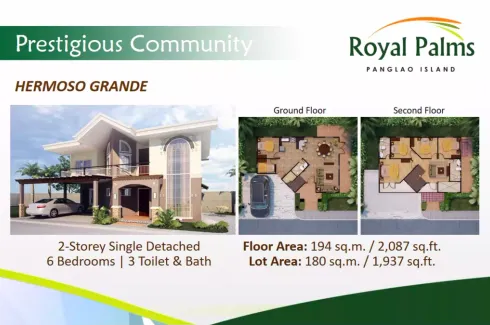 Spacious Bungalow Single Detached House for Sale in Panglao, Bohol in Royal Palms Quatro Panglao, a pre-selling exclusive subdivision in Barangay Biking, Dauis, Panglao Island, Bohol at a very affordable price.ACCESSIBILITY:10 Mins Drive to Tagbilaran City, Bohol.10 Mins Drive to Panglao White Beaches.10 Mins Drive Schools, Churches & Major Banks.10 Mins to super Market, and other major establishments.House...