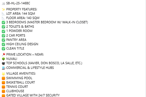 Total Contract Price: P 7,549,500Pag-Ibig Financing1. Down payment, P 2,580,500, less Reservation Fee, P 40,000 = Net Down payment, P 2,540,500, payable for 18 months, P 141,138.89 monthly.Balance Bank Financing, P 4,969,000Monthly Amortization P 32,172.98 Repricing period after 3 years, 5 years, 10 years, 15 years, 20 years, 25 years and 30 years for HDMF.(More payment options are available, message...