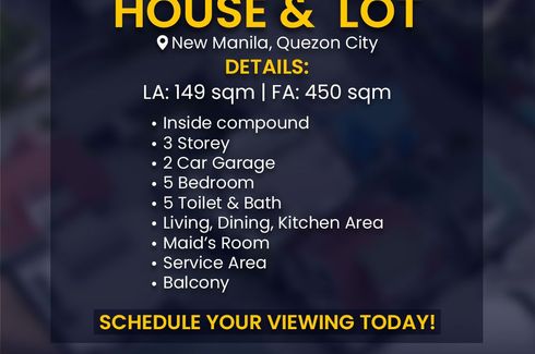 ‹ › 1/10 House for sale in Mariana, Metro Manila near LRT-2 Gilmore Quezon City, Metro Manila ₱ 61,000,000 House House & Lot For Sale in New Manila, Quezon CityInside Compound3 Storey2 Car Garagewith furniture: 2 beds, single sofa, electric range and aircons5 Bedroom5 Toilet and BathLiving, Dining, Kitchen AreaMaid s RoomService AreaBalconyLot Area (SQM): 149Floor Area (SQM): 450Price: 63,000,000.00 Cielo Jean Tubeza Verified seller Call