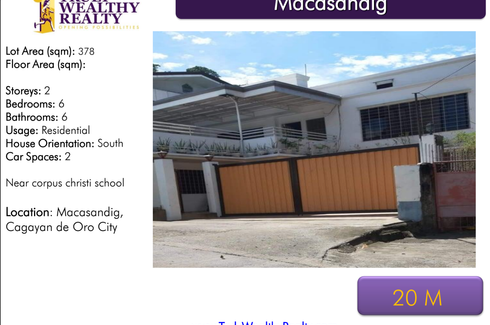 ‹ › 1/1 6 Bedroom House for sale in Indahag, Misamis Oriental Cagayan de Oro, Misamis Oriental ₱ 20,000,000 6 6 378 m2 House Lot Area (sqm): 378Floor Area (sqm): Storeys: 2Bedrooms: 6Bathrooms: 6Usage: ResidentialHouse Orientation: SouthCar Spaces: 2Near corpus christi school Alessandra Victoria Guingao Verified seller Call