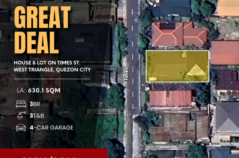 ‹ › 1/1 3 Bedroom House for sale in West Triangle, Metro Manila near MRT-3 Quezon Avenue Quezon City, Metro Manila ₱ 126,020,000 3 3 630.1 m2 House GREAT DEAL House & Lot on Times St., West Triangle, Quezon CityLot area: 630.1 sqm3 bedrooms3 toilet and bath4-cAR GARAGEMaid’s roomPRICE: ₱200k/sqm or ₱126,020,000ID: NCB5348 Grandeur Realty Verified seller Call