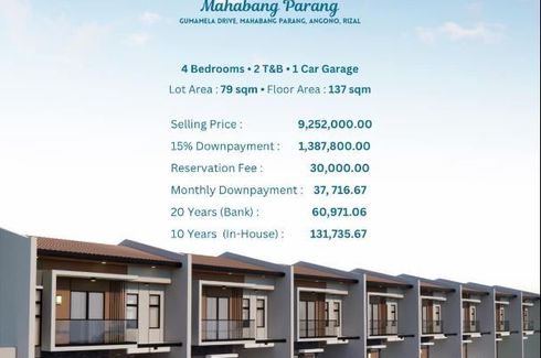 ‹ › 1/7 2 Bedroom House for sale in Mahabang Parang, Rizal Angono, Rizal โฑ 4,470,000 2 2 60 m2 House Security Car park Garden Wi-Fi 24-hour security Electricity Water PRE SELLING House AND LOT FOR SALE IN EASTBOROUGH PLACE 3 Angono RIZALEASTBOROUGH PLACE 3Mahabang Parang, Angono RizalNearby Areas :- Vista Mall- Antipolo Doctor's Hospital- Waltermart- Shopwise- Antipolo ChurchAmenities : - ClubHouse- Park- Playground- Gated CommunityAvailable Units : ALBALot Area : 100 - 135sqm / Floor Area : 77sqm2Bedroom / 2 Toilet & Bath / 2 Car Garage6.8M - 7.3MAURORALot Area... Clarisse Tolentino Verified seller Call