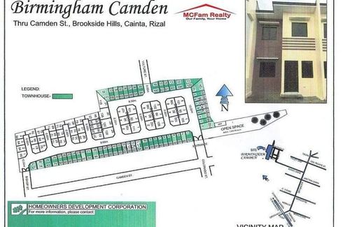 BIRMINGHAM CAMDEN Thru Brookside Hills,Ortigas Ext.,Cainta,Rizal Sheffield Model “🏠Ready for Occupancy available” TownHouse Fully finished turnover Lot Area 60sqm Floor Area 50sqm TCP: 4,800,000 15%DP: 720,000(with 3%Discount if Spot Cash) Res Fee: 30,00012 months=57,500Bank Financing:20yrs 31,632 15yrs 36,67210yrs 47,3725yrs 80,789Required Monthly Income: 95,000 & up Note: 2 BR, 1 T&B,1 carport...