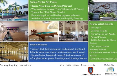 ‹ › 1/4 Land for sale in Tungkong Mangga, Bulacan San Jose del Monte, Bulacan ₱ 29,711,000 720 m2 Swimming pool Air conditioning Gym Security Car park Garden Children's area Concierge +2 Miravera, Altaraza is strategically located in San Jose Del Monte with it's proximity to the New Manila International Airport, just 45 minutes away, and MRT-7 provides accessibility. Just beside the highway, you may enter the mixed-use masterplanned estate of Ayala Land that homes Colegio de San Jose, Waltermart, Healthway, and other locators that will surely add value to your investments.Miravera... Fredrick Chiu Wee Verified seller Call