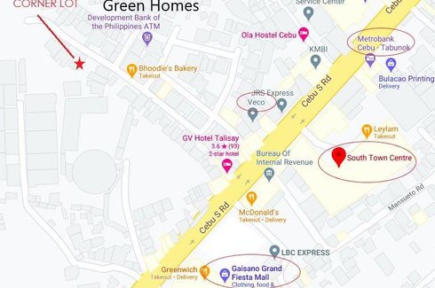 ‹ › 1/3 Land for sale in Bulacao, Cebu Talisay, Cebu ₱ 8,510,000 370 m2 Residential Lot For SaleInside a Village across Gaisano Tabunok and Robinson's South Town Center. Lot area:370 sqm. Corner lot at P23,000K / sqm. net of taxes. Stellar Estates PH Call