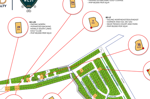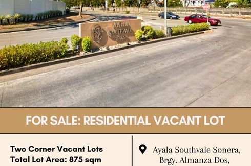 FOR SALE Residential Vacant Lot located at Ayala Southvale Sonera, Brgy. Almanza Dos, Las Piñas CityTwo Corner Residential Vacant LotsCan be sold separately or altogetherLot Area: 429-446 sqmPrice: P45,045,000 to P46,830,000 (P105k/sqm) grossTotal Lot Area: 875 sqmTotal Price: P91,875,000 (P105k/sqm) grossNCB866