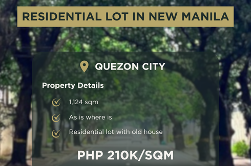 ‹ › 1/1 Land for sale in Mariana, Metro Manila near LRT-2 Gilmore Quezon City, Metro Manila ₱ 251,900,000 1,260 m2 CP-RS Lot for Sale in New Manila, Quezon City Welcome to New Manila! It was once called the crown jewel of Quezon City for a reason. The residential district of New Manila represents an era when families afforded spacious and elegant living. Its old mansions and sprawling compounds attest to that. New Manila is home to the PETA Theater, run by the Philippine Educational Theater Association, where artists... 27C Realty Verified seller Call