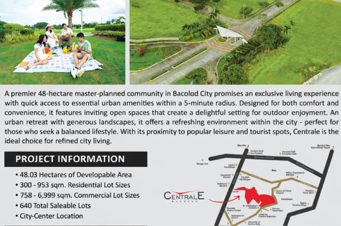 ‹ › 1/11 Land for sale in Mandalagan, Negros Occidental Bacolod, Negros Occidental ₱ 8,500,800 300 m2 Swimming pool Security Garden Children's area Invest in CentralE Bacolod, a 48-hectare master-planned community located along La Salle Avenue, Brgy. Mandalagan, Bacolod City. This prime development offers an excellent opportunity for homebuyers and investors looking for a strategic address in the heart of the city.Choose from Residential Lot Sizes ranging from 300 sqm to 800 sqm and Commercial Lot Sizes from 765 sqm to 2,238 sqm. Residents can... Bacolod House Lot Condo Verified seller Call