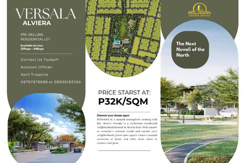 ‹ › 1/7 Land for sale in Mancatian, Pampanga Porac, Pampanga ₱ 8,288,000 259 m2 PRE-SELLING PREMIUM RESIDENTIAL LOTS IN VERSALA - ALVIERA (AYALA Land PORAC, PAMPANGA) NEAR IN SCTEX, NLEX AND CLARKLocation: Alviera Brgy. Hacienda Dolores and Banaba, Porac, PampangaLot Area: 270-515 sqmDetails:Available lots in:Phase 1Phase 2 Phase 3Phase 4Selling price starts at: 32,000 per sqm Amenities:Club houseSwimming poolBasketball CourtBiking and Jogging trailsCentral amenity parkSecurity... April Ann M. Traquina Verified seller Call