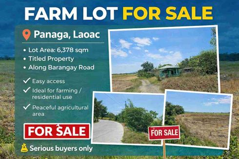 New ‹ › 1/7 Land for sale in Panaga, Pangasinan Laoac, Pangasinan ₱ 3,826,800 6,378 m2 FARM LOT FOR SALE📍 Panaga, Laoac• Lot Area: 6,378 sqm• Titled Property• Along Barangay Road• Flat TerrainNET PRICE: 600 PER SQM✔ Easy access✔ Ideal for farming / residential use✔ Peaceful agricultural area💰 Serious buyers only Avenia Land Call