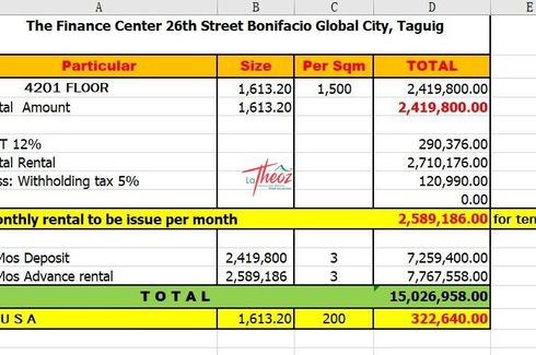 The median rent price for commercials in Taguig is ₱ 427,182.