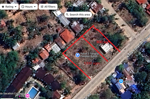 ‹ › 1/6 Land for sale in Tangnan, Bohol Panglao, Bohol ₱ 224,660,000 89,864 m2 89,864 sq.m TITLED Lot For Sale located in Tangnan, Panglao Island, Bohol. Situated along barangay road and approximately 600 meters from the main highway.Nearby Areas/Establishments:3-minute drive to Wilcon Depot4-minute drive to Bohol Island State University – Bingag Campus5-minute drive to Bohol-Panglao International Airport8-minute drive to Alona White BeachContact Us Now! Boholandscape Real Estate Brokers & Associates Call