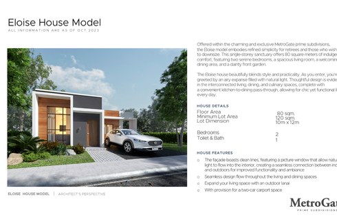 Chelsea Model – Single Attached Lanello Heigths RFO - Complete TURN OVER BANK FINANCING 15% DOWNPAYMENT – 556,87500 LESS Reservation FEE – 20,000 BALANCE ON EQUITY – 3,155,625.00 18 Months:29,826.39 TCP – 43,712,500.00 20 yrs. To years to pay : 24,465.53 Required Income: 51,37494,545.50 Lot area : 66sqm Floor area : 49sqm 2 bedrooms 1 toilet and Bath Located: Brgy. Pasong Camacheli Gen. Trias...