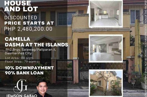 New ‹ › 1/6 3 Bedroom House for sale in Paliparan III, Cavite Dasmariñas, Cavite ₱ 2,480,200 (₱ 31,395 / m2) 3 2 79 m2 House Address : Lot 10, Block 14, Lantana Street, Camella Dasma at The Islands, Phase 2, Cavite FORECLOSED RAVE Verified seller Call