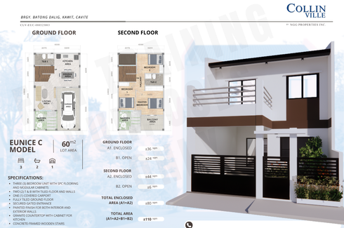 ‹ › 1/18 3 Bedroom House for sale in Batong Dalig, Cavite Kawit, Cavite ₱ 7,795,800 3 2 60 m2 House Swimming pool Balcony 24-hour security Children's area Electricity Water Fully fenced +2 HOUSE AND LOT FOR SALE IN COLLIN VILLEAlong Centennial Road / Antero Soriano Hiway Kawit CaviteJust across S & R Kawit and Ayala Malls Evo CityHouse Model: Eunice B Single AttachedLot area: 60 sq.m.Floor area: 80 sq.m.Bedrooms: 3Bathrooms: 2Living AreaService AreaParking slot: 1Service AreaWith Gate and FenceVillage Amenities:Swimming poolBasketball CourtClubhouseWith roving security and guards posted... Great Home Deals Verified seller Call