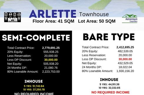 ‹ › 1/12 2 Bedroom Townhouse for sale in Cabuco, Cavite Trece Martires, Cavite ₱ 2,949,861 2 1 Townhouse 24-hour security Brookstone ParkLocation: Cabuco, Trece Martires, CaviteAstrid ModelHouse Feature:Full 2 Storey Townhouse2 Bedrooms1 Toilet and BathProvision for CarportProvision for Rear ExpansionTSP: 2,949,861.25Floor Area: 45sqmLot Area:50sqm (min)Payment Terms:Reservation Fee: 20,00020-80% Downpayment30-70% Bank Financing/In-House/PagibigAmenities:Basketball CourtTennis CourtParkPlayparkPool CabanaPoolClubhouseNearby:Kanggahan... Mitch Sampaga Verified seller Call